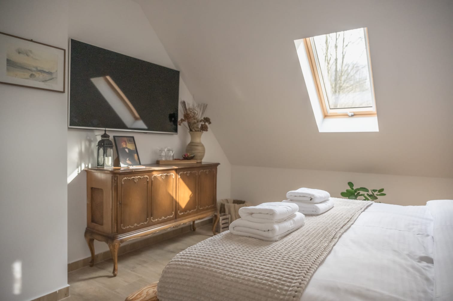Doživite vrhunski odmor u našem luksuznom dvokrevetnom apartmanu koji nudi ne samo udobnost i stil, već i privatnu saunu idealnu za opuštanje nakon dana provedenog u istraživanju okoline. Ovaj elegantno uređeni apartman sadrži prostrani bračni krevet, moderno opremljeno kupatilo i zaseban prostor za sedenje. Apartman je opremljen najnovijim tehnološkim uređajima, uključujući visokokvalitetni Wi-Fi i pametni TV, što ga čini savršenim izborom za parove koji traže spoj avanture i relaksacije.
